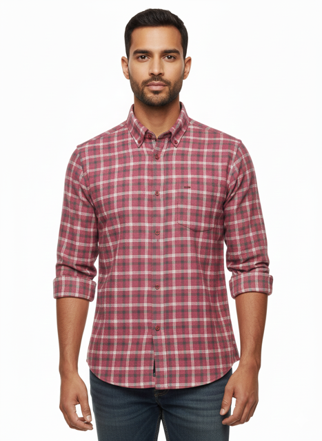 پیراهن پشمی "چهار خانه" زرشکی